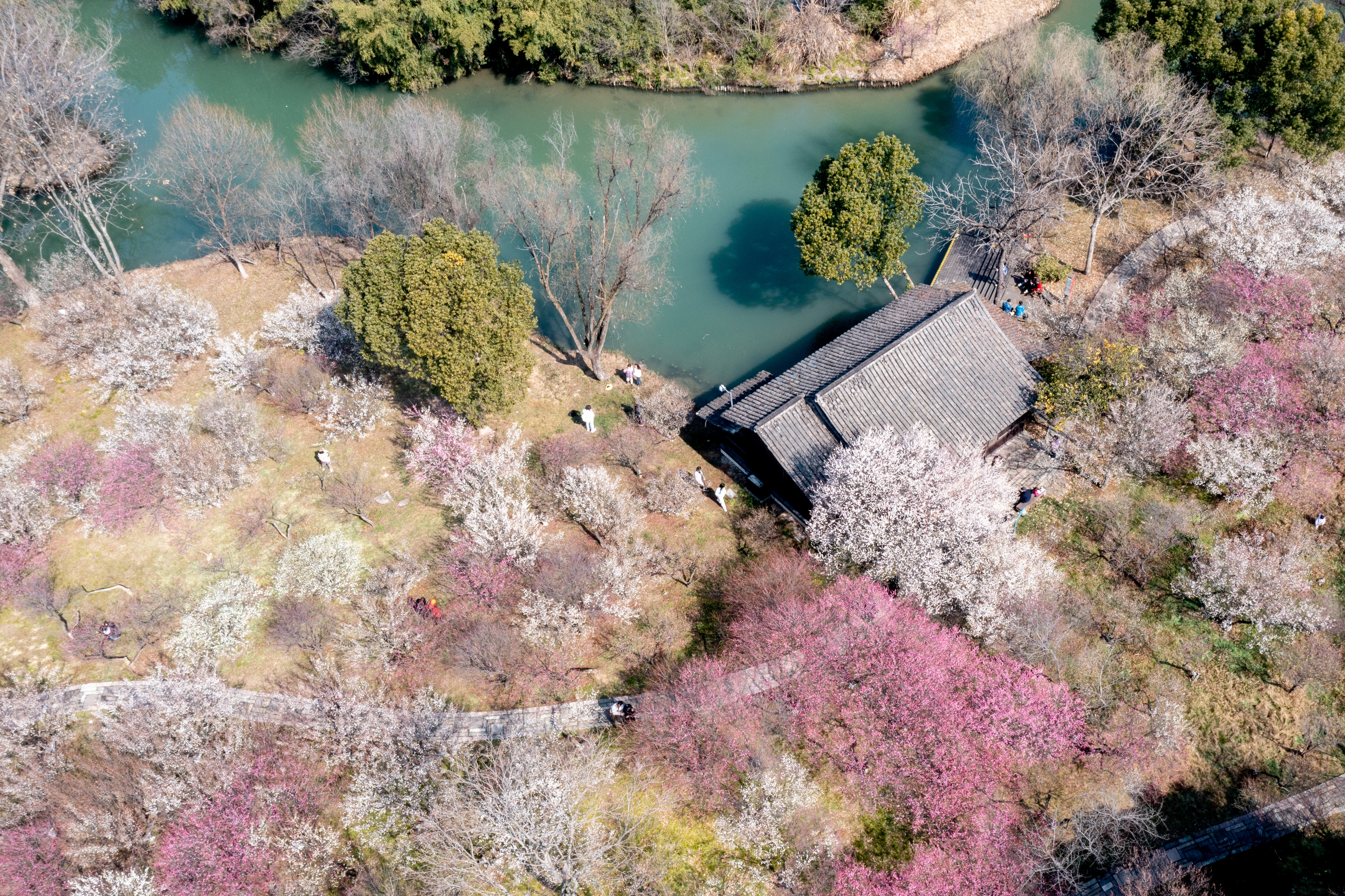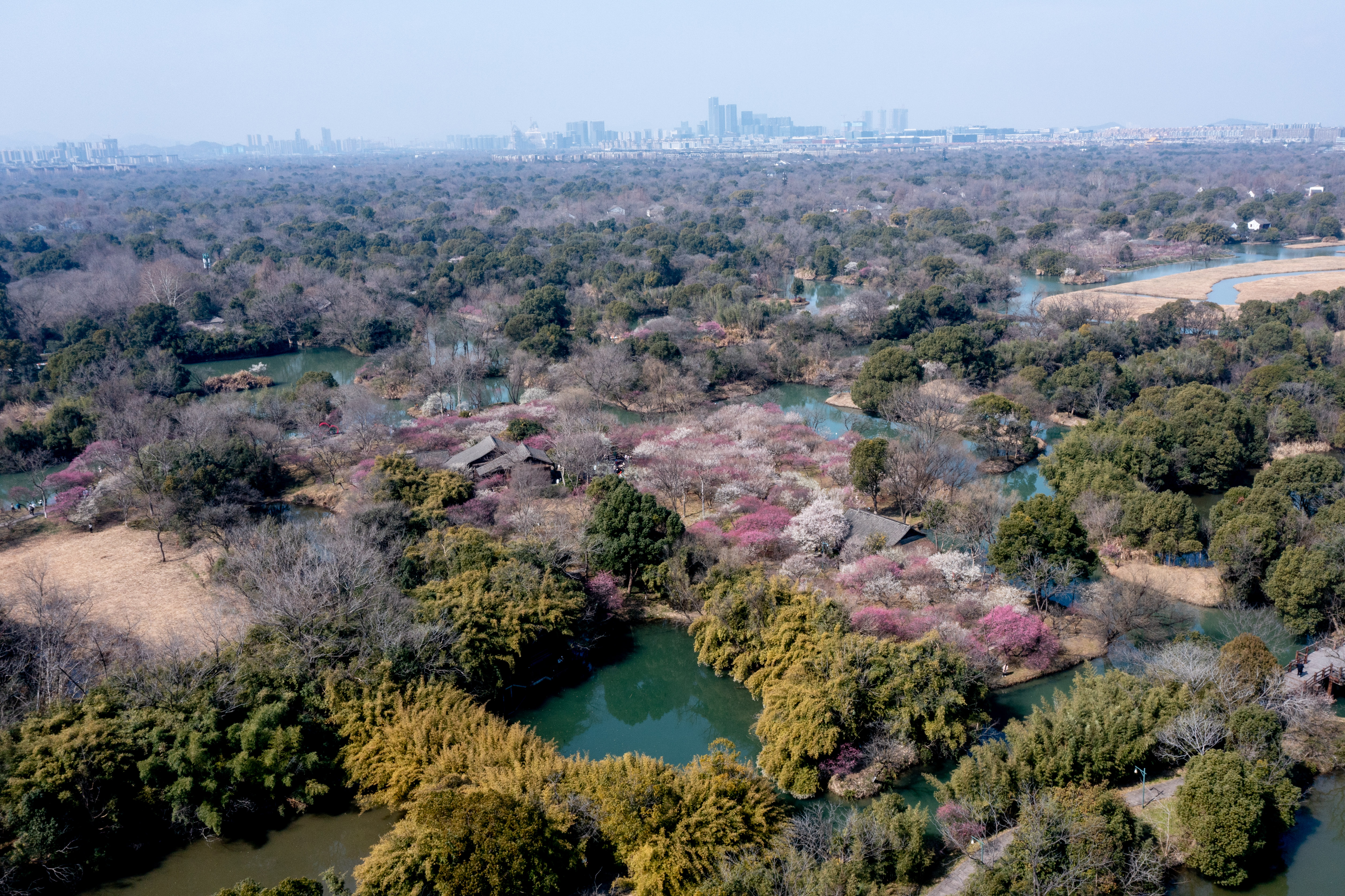 根据西溪湿地工作人员介绍,目前湿地内的梅花开放率已达50%,进入了盛花期。