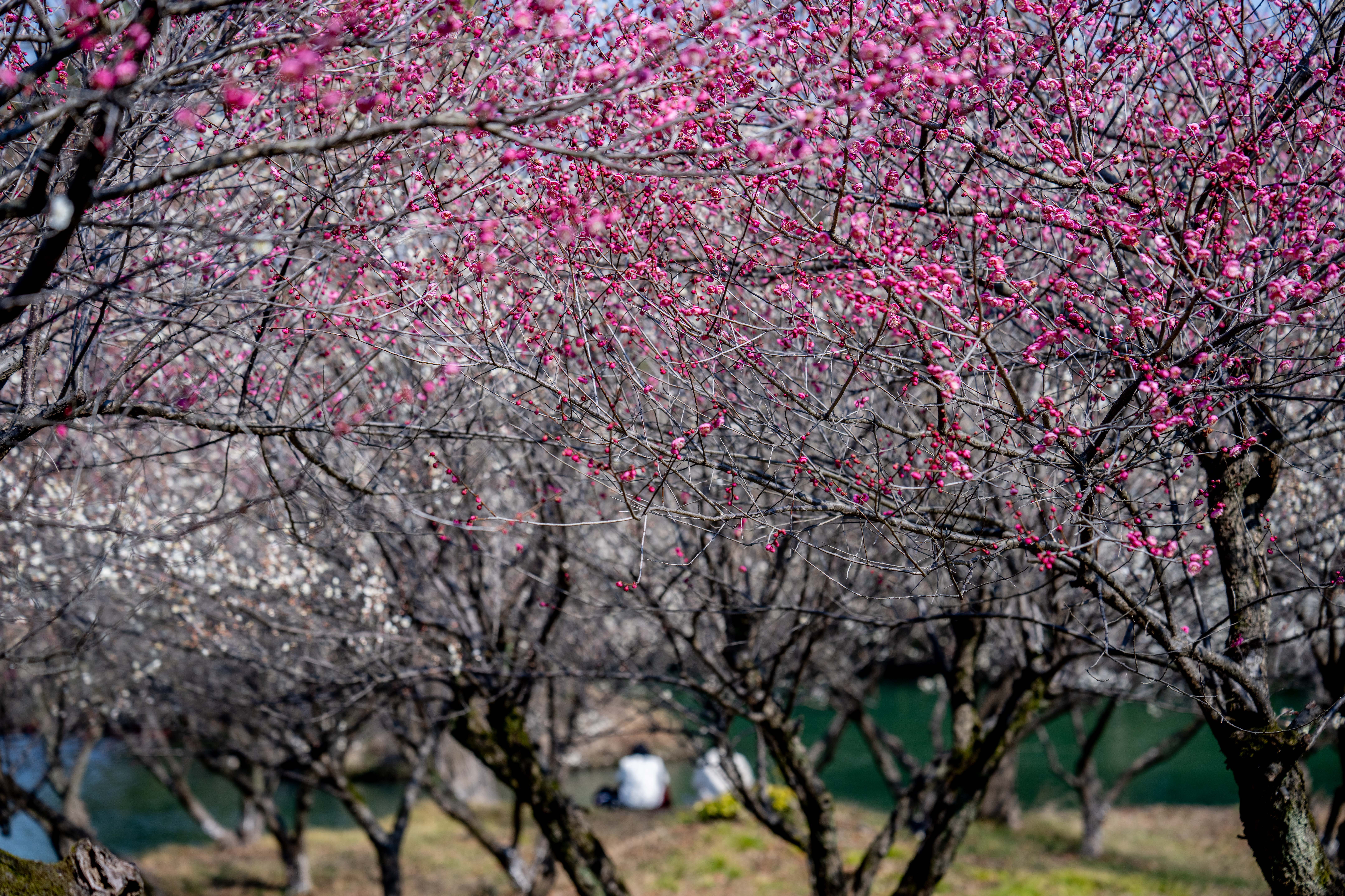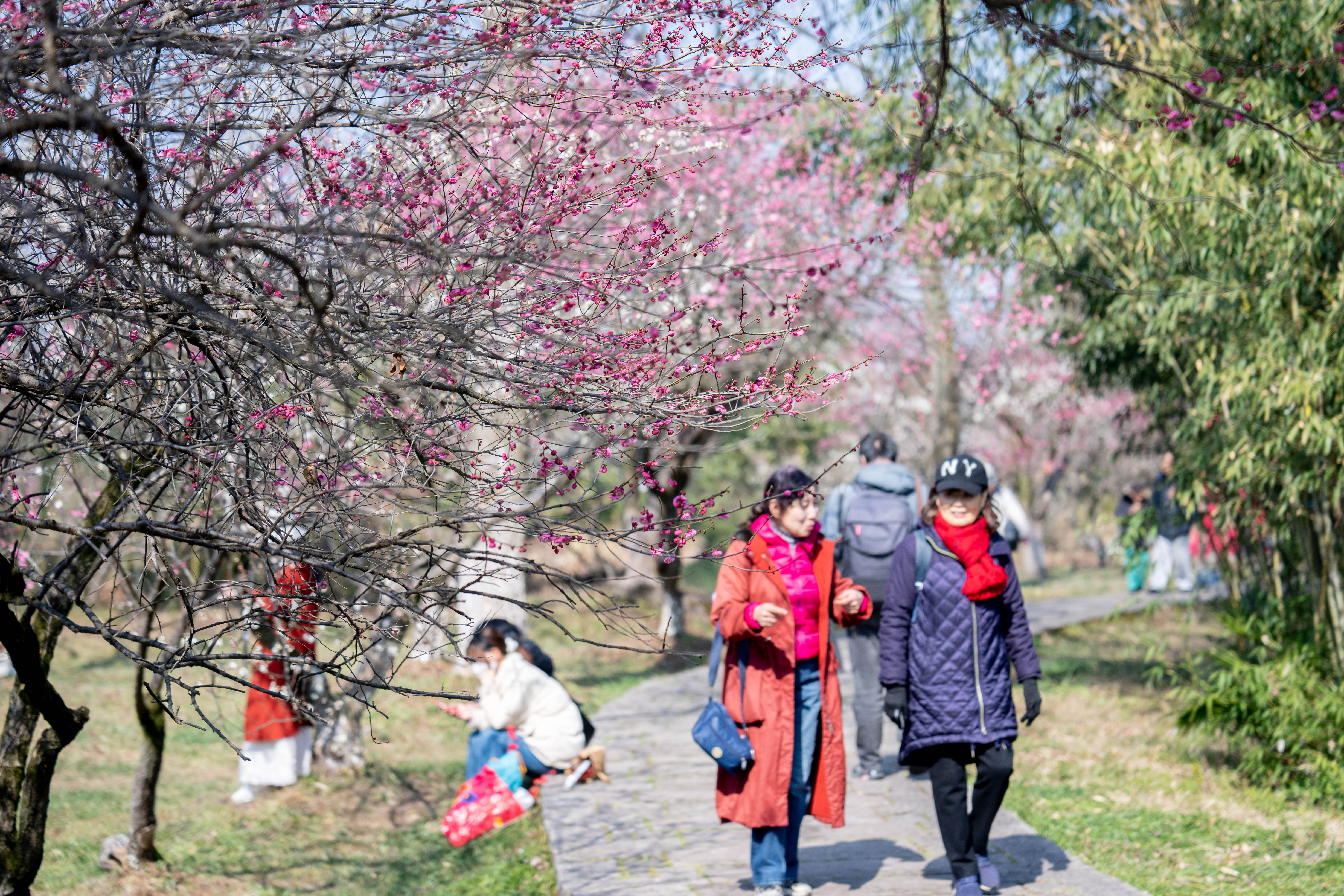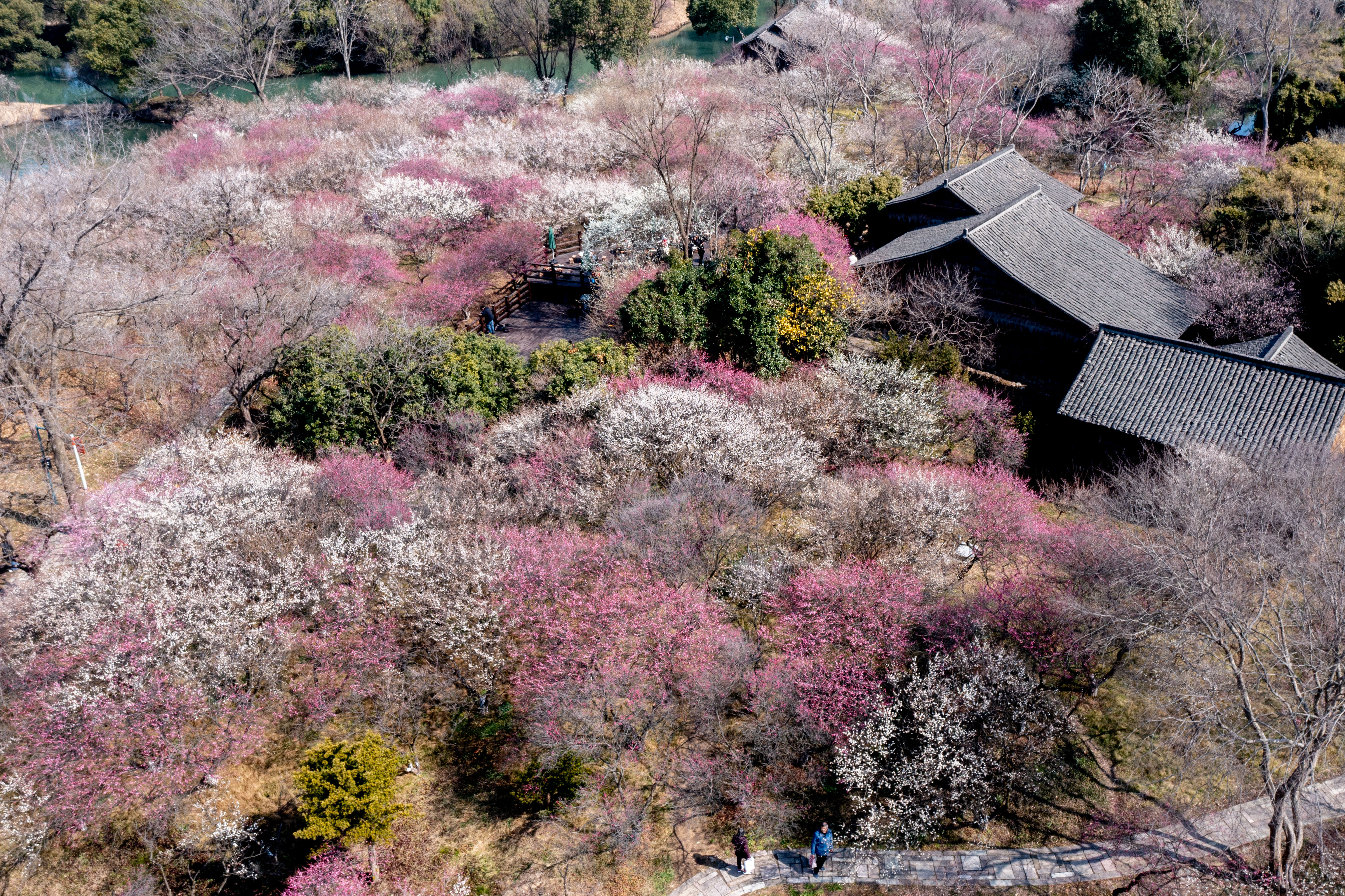 2月18日,天气晴好,杭州西溪湿地公园内,逐步盛开的梅花吸引了不少游客前来打卡。