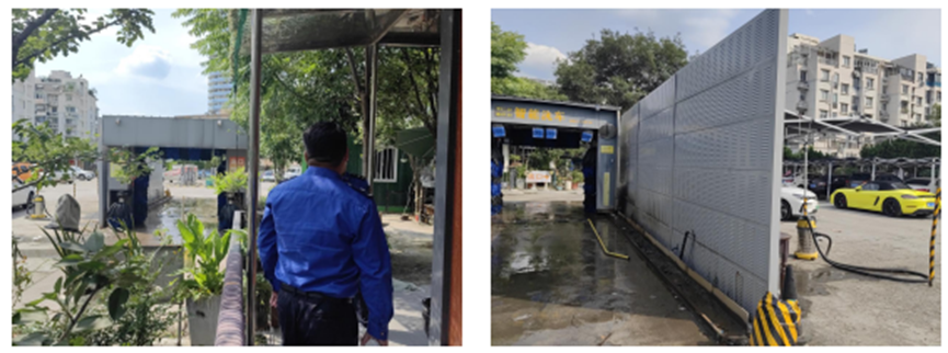 在城南街道另一小区旁,有一个大型电动车自动充电站,白天洗车噪声、晚上9点之后充电车辆进出噪声以及司机喧哗声引起了周边居民的投诉。县综合行政执法人员赶赴现场调查核实后发现道路破损、洗车设备有噪声、人员夜间高声交谈等问题。执法队员与街道积极沟通,确定由街道对场地内部分破损道路重修浇筑,减轻车辆进出的噪声;督促经营单位调低自助洗车设备语音提醒音量,并在设备旁安装隔音墙,降低自助洗车设备对周边居民的影响;同时要求经营单位安排人员24小时值班,增设宣传牌及司机休息室,提醒司机在休息室内休息聊天,降低说话音量。