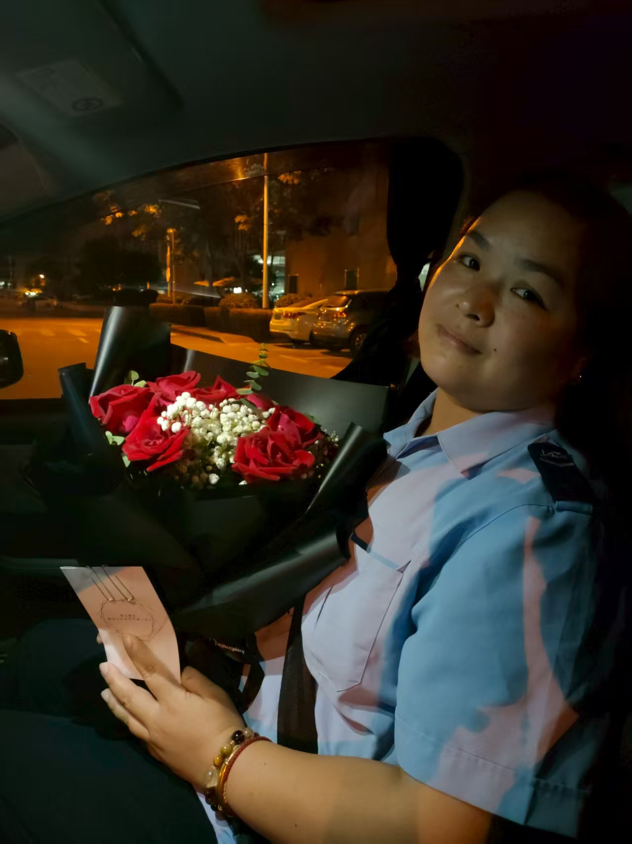8月28日晚10时30分,杭州公交332路司机余晓慧完成当日最后一项工作——清扫车厢后,准备下班归家。当她走到总调门口时,丈夫缪方琦的身影突然出现在眼前,手中捧着的红色玫瑰在夜色中格外亮眼,眼神里满是笑意。“你怎么来了?”余晓慧的声音里带着意外,眼眶却悄悄发热。缪方琦略显腼腆地解释:“再过1小时30分就是29号了,我想和你一起庆祝我们的第15个七夕情人节。”简单一句话,瞬间驱散了余晓慧一天的疲惫。作为同为公交人的伴侣,两人的体谅与牵挂早已融入日常:余晓慧主动承担家务、照顾孩子,时刻记挂缪方琦的身体,常发信息提醒他上班注意防暑、及时补水;缪方琦则把关心落在“行车安全”上,日常叮嘱从不间断,用细节守护彼此。