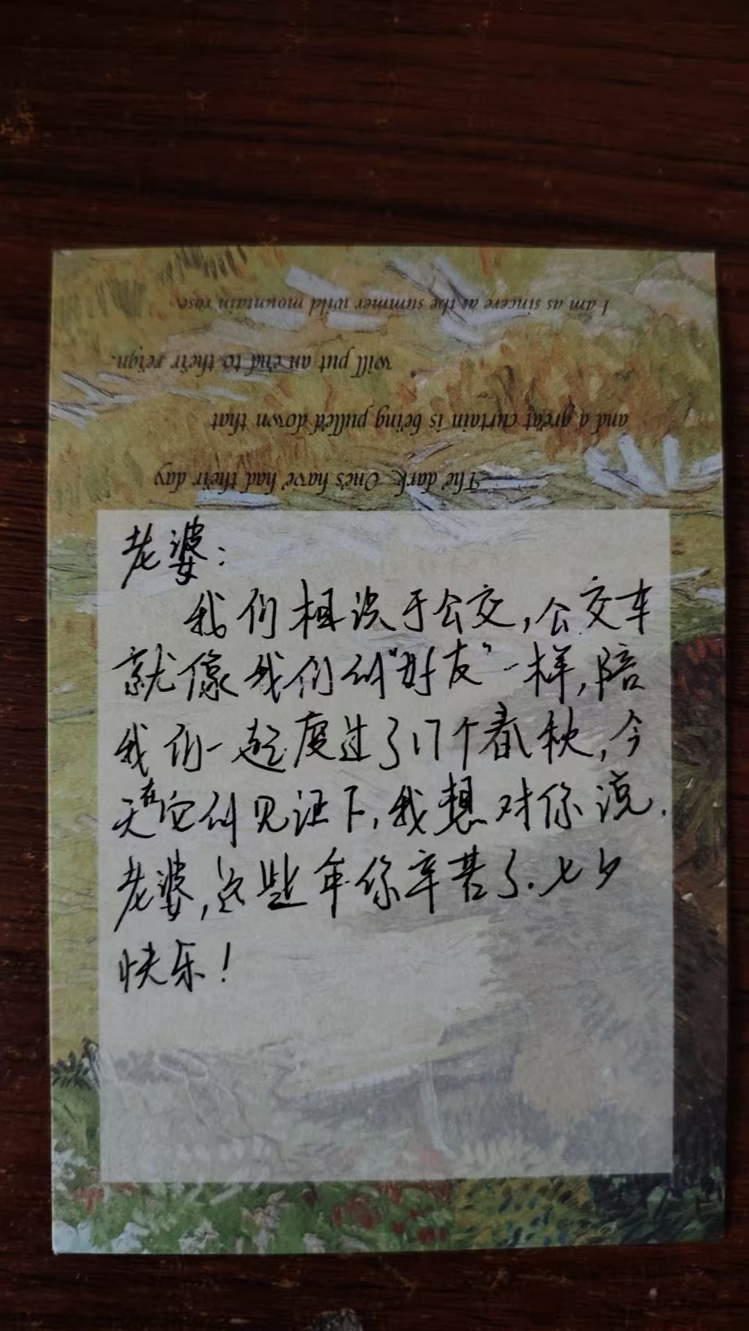 8月29日,七夕当天清晨,杭州公交134路的停车场里,另一幕温情场景悄然上演。司机徐道伟比往常更早来到车场,在妻子何从贞出车前,递上了一份精心准备的礼物——礼盒里装着何从贞最爱的水果,还有一张手写卡片。卡片上的字迹朴实却暖心:“我们相识于公交,公交车就像我们的‘好友’一样,陪我们一起度过了17个春秋,今天在它的见证下,我想对你说,老婆,这些年你辛苦了,七夕快乐!”这对夫妻的缘分始于公交培训时期,后来又一同被分配到134路公交线路,从最初的青涩相伴到如今的相濡以沫,17年间,公交车厢与线路不仅是他们的工作场所,更成了爱情与生活的重要见证。