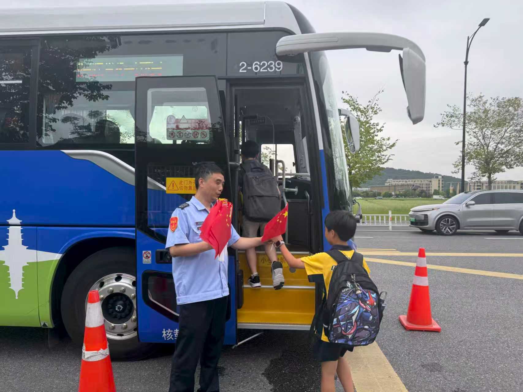 “临近国庆,就想让孩子们实实在在感受到节日的仪式感,也借着这面小国旗,传递对祖国的祝福。”谈及初衷,郑建锋的话语朴实而真挚。他记得,当孩子们举着国旗甜甜地说“谢谢郑叔叔”时,自己心里满是感动。作为2024年度集团劳动模范,郑建锋自2023年起负责杭州国际学校求知专线的接送任务,一年多来,他始终以细致入微的服务守护学子出行:提前检查车辆安全、调整车厢温度、提醒学子系好安全带……这些日常细节,让他不仅成为孩子们眼中亲切的“郑叔叔”,更赢得了家长群体的广泛好评。
