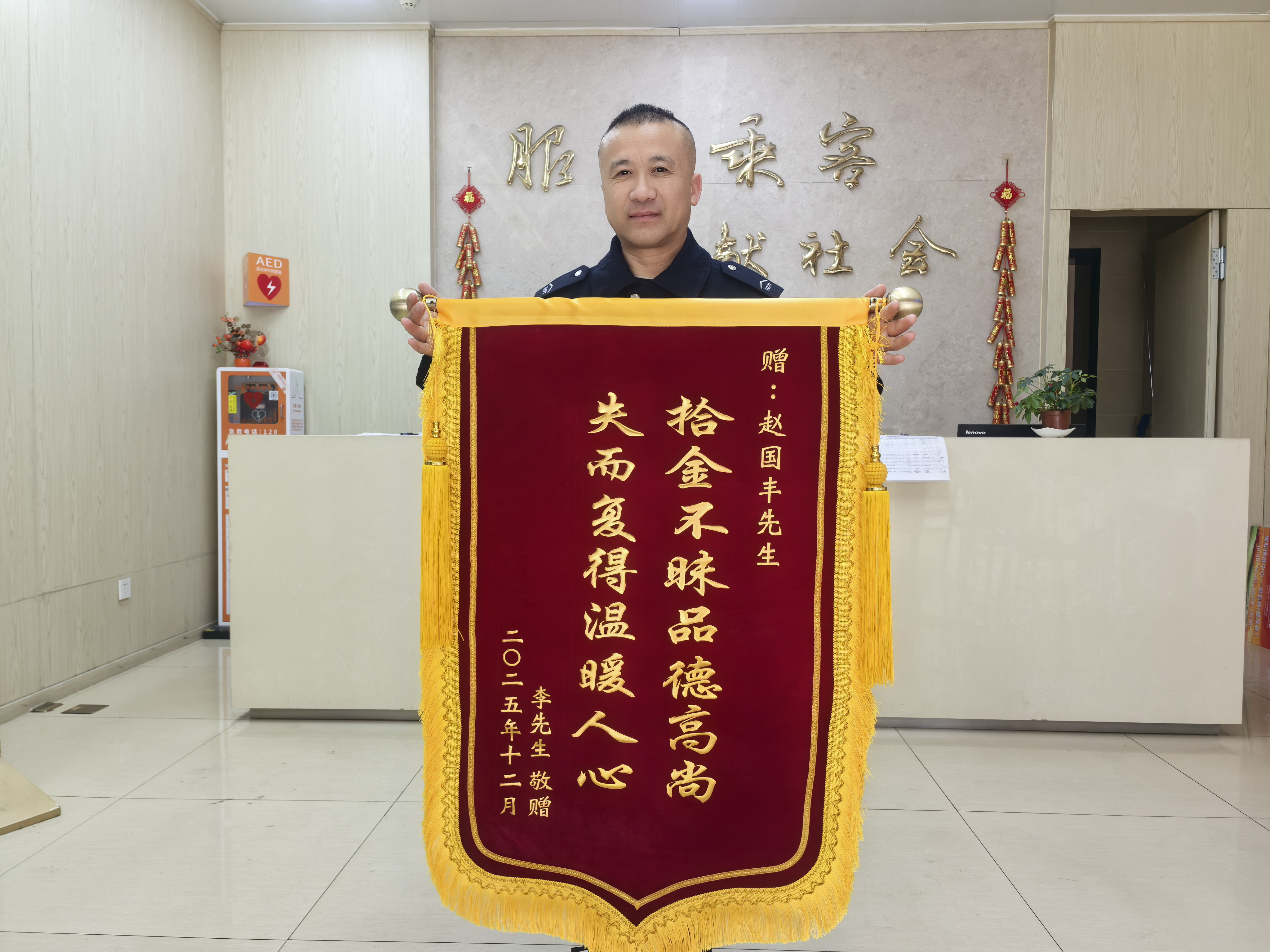 没过多久,李先生便匆匆赶到了翠苑一区公交总站。站点工作人员宣莉莉在仔细核实李先生的身份信息后,将手机归还给了他。失而复得的喜悦让李先生激动不已,他对公交司机赵国丰和工作人员宣莉莉表达了深深的感激之情。虽然手机本身价值不菲,但手机里还存储了许多重要的资料和联系方式,一旦丢失,将会给自己带来极大的不便。为了向公交司机及工作人员表示感谢,李先生特意制作了锦旗,并于12月7日送至该站点。