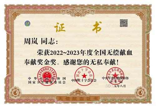 近日,杭州公交电车分公司职工周岚收获的三项重量级荣誉,让一段跨越多年的公益坚守走进公众视野——2022—2023年度全国无偿献血志愿服务奖三星级奖、全国无偿献血奉献奖金奖,以及中国红十字志愿服务三星奖章,三枚奖章的背后,是90次挽袖献血的执着,是26800毫升热血的倾注,更是1500余小时志愿服务的默默守护。