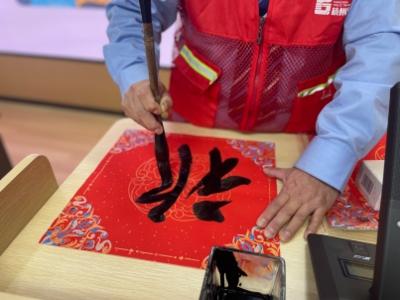 活动现场的另一侧,笔墨飘香暖意浓。公交员工、书法爱好者康福海挥毫泼墨,“福满车厢,平安喜乐”“福字向左,马踏祥瑞”等一幅幅笔力遒劲的定制福字跃然纸上,既承载着新春祝福,更寄托着对孩子们平安成长的期许。书写间隙,他手把手指导孩子们握笔、运笔,让孩子们在笔墨氤氲中感受中华书法文化的独特魅力,不少孩子捧着自己参与创作的福字,脸上洋溢着自豪与幸福。康福海精心绘制的威风醒狮图案,与手中福字相映成趣,提前为社区渲染出浓厚的新春氛围。“孩子既学会了实用的公交安全知识,又感受了笔墨文化,这份福字是特别的新春礼物。”社区居民王女士的点赞,道出了活动的价值所在。