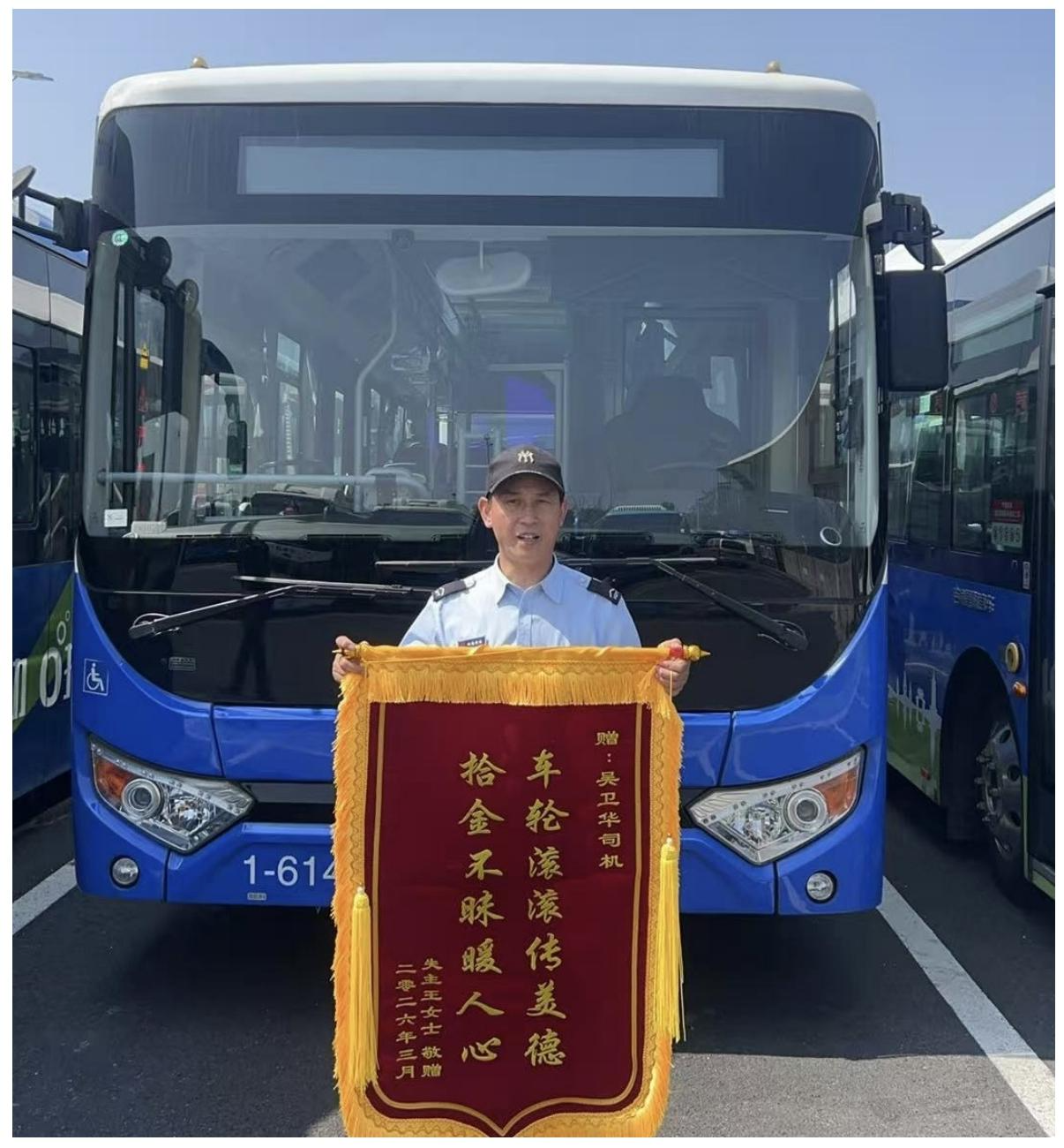 得知手机失而复得的消息,王女士悬着的心终于放下。吴尚还耐心为其指引前往公交总站的乘车路线,仅20分钟后,王女士的家属便顺利抵达总站,完成了手机的认领取回。为感谢公交团队的高效处置与拾金不昧的职业操守,3月13日上午,王女士特意定制了锦旗,亲手送到吴卫华手中,以最质朴的方式表达谢意。