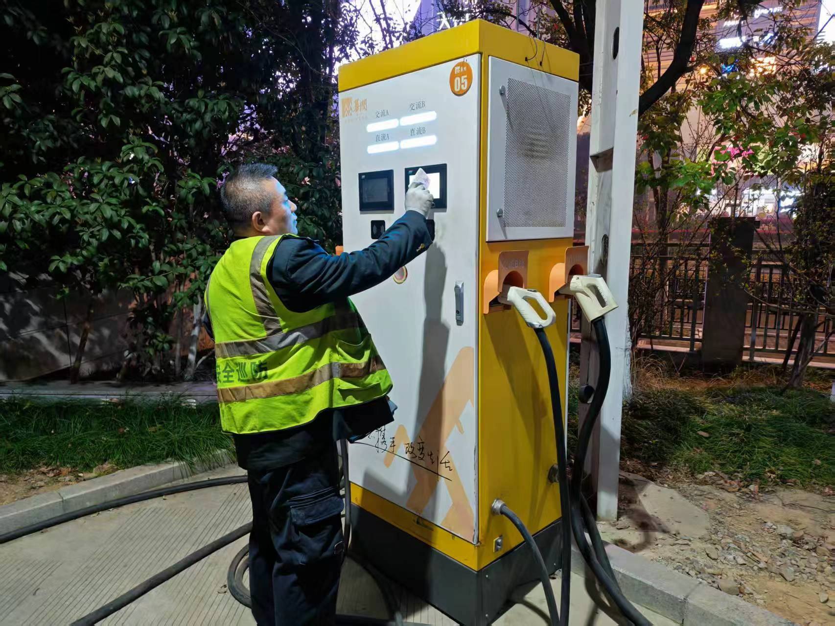 夜间充电,安全是重中之重。为了全程把控充电状态,王建每隔一小时就要起身,在场站内完成一轮全区域巡检。夜色沉沉,只有充电桩的指示灯在黑暗中明灭闪烁,他的身影在一排排车位间来回穿梭,逐一确认设备运行状态、接口连接情况,不放过任何一处可能存在的安全隐患。